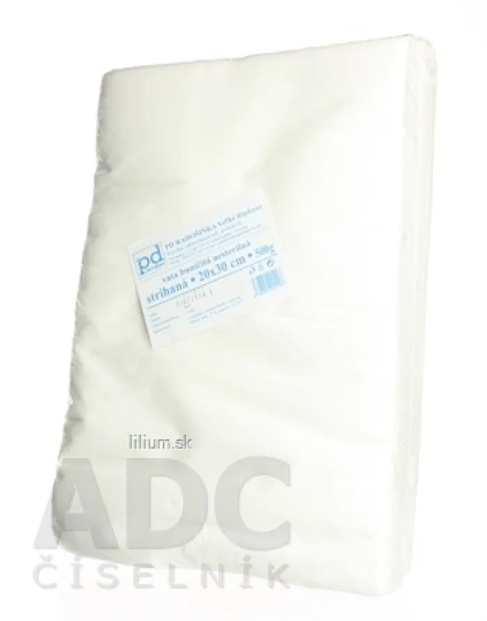 Buničitá strihaná nesterilná vata bielená, mäkká. Môže slúžiť ako: tlaková poduška pri obväzoch, odložka pri menších operačných zákrokoch a na hygienické účely. Viac na adcc.sk