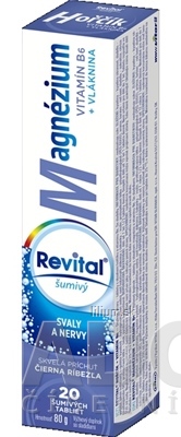 Výživový doplnok REVITAL® MAGNÉZIUM + VITAMÍN B6 šumivé tablety s príchuťou čiernej ríbezle s obsahom magnézia a vitamínu B6.