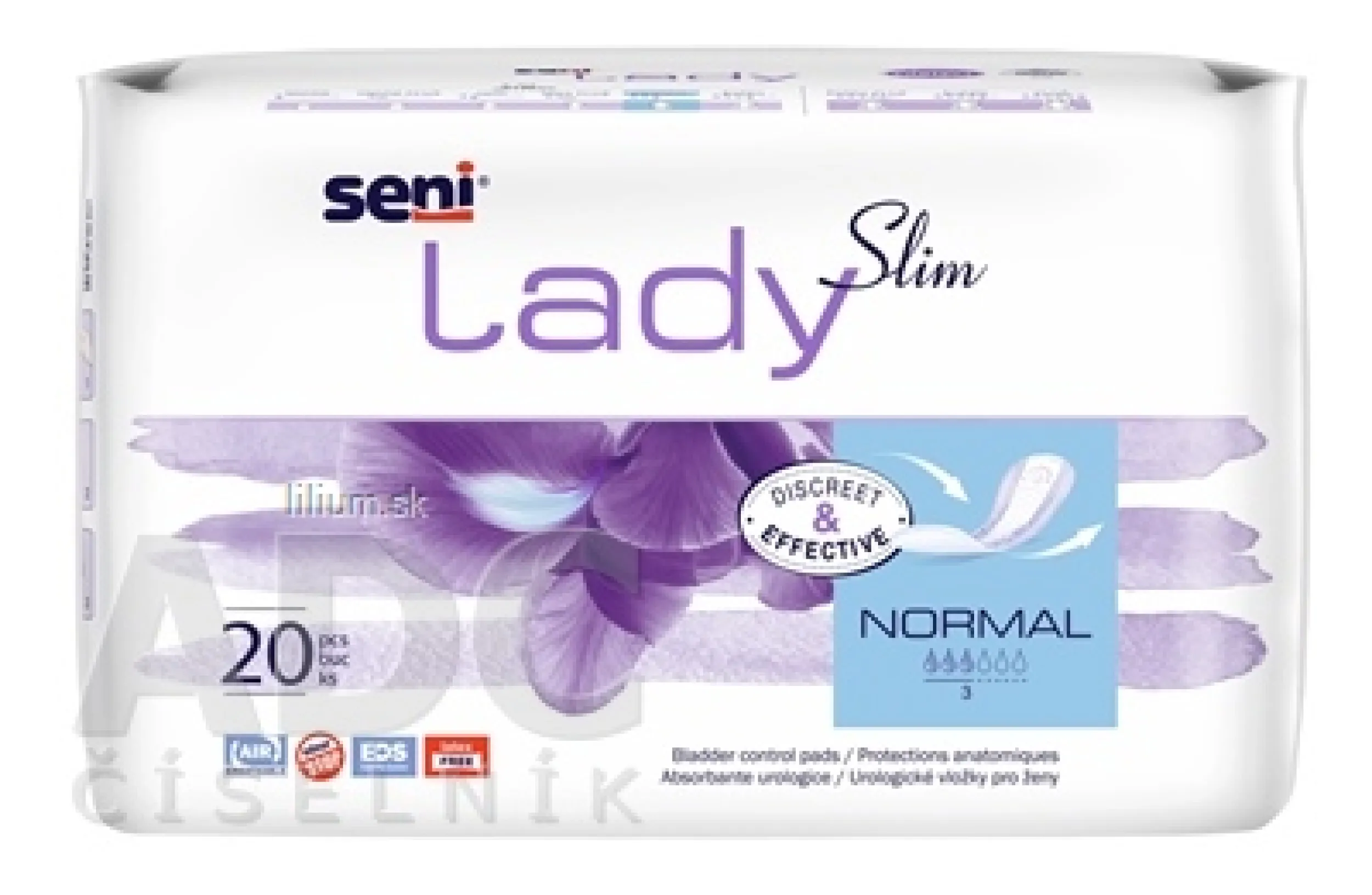 Absorpčné vložky pre inkontinentných pacientov, určené najmä pre ženy. Neobsahujú latex. Savosť - 340 ml. Diskrétne, priedušné, spoľahlivé. Vložky sú určené: