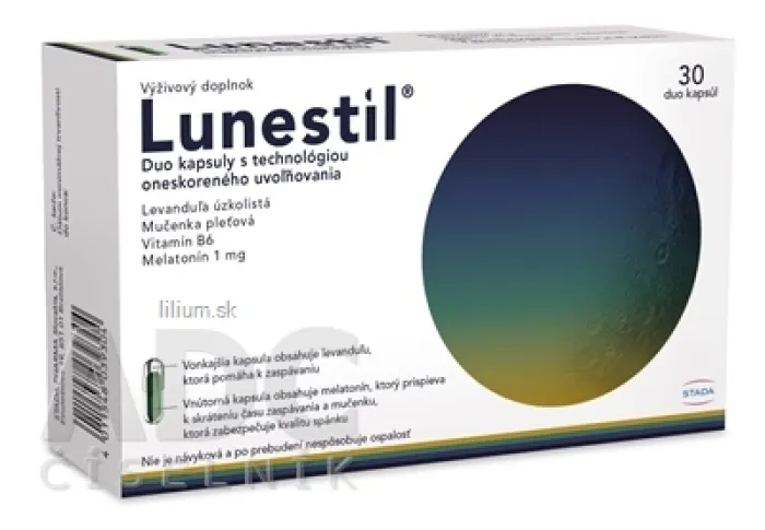 Výživový doplnok s obsahom melatonínu 1 mg, vitamínu B6, levanduľového oleja a mučenky pleťovej.