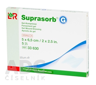 Gélová kompresa Suprasorb G je nelepivá, hydrogelová kompresa s vysokým obsahom vody. Je to obojstranný,číry, priehľadný hydrogél vytvorený okolo podpornej modrej polyetylénovej matrice. Výrobok obsahuje približne 70 % vody, pričom zvyšných 30 % tvorí napuchnutý akrylový polymer na báze derivátu tauratu s konzervačnou látkou fenoxyetanol. Gél prepúšťa vodné výpary a plyny. Gélová kompresa Suprasorb G poskytuje vlhké prostredie na povrchu rany. Za predpokladu, že sa zabráni vyschnutiu kompresy, nebude pri odstraňovaní prilepená na podkladové tkanivo.