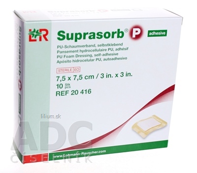 Polyuretánový penový obväz Suprasorb® P, samolepiaci, je trojvrstvový obväz na rany z polyuretánovej nosnej vrstvy s akrylátovým lepidlom a z polyuretánovej penovej vrstvy, ktorá je naviac vybavená perforovanou polyuretánovou vrstvou, ktorá má kontakt s ranou.