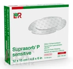Silikónový penový obväz Suprasorb® P sensitive sa skladá zo silikónovej kontaktnej vrstvy s ranou, vrstvy PU peny, distribučnej vrstvy z netkanej textílie, vrstvy superabsorpčného jadra a vodoodolného filmu priepustného pre vodnú paru. Jemná silikónová vrstva sa dá zdvihnúť a premiestniť bez toho, aby stratila svoju priľnavosť. Vrstva absorpčnej podložky poskytuje vysokú absorpciu a zadržanie exsudátu.