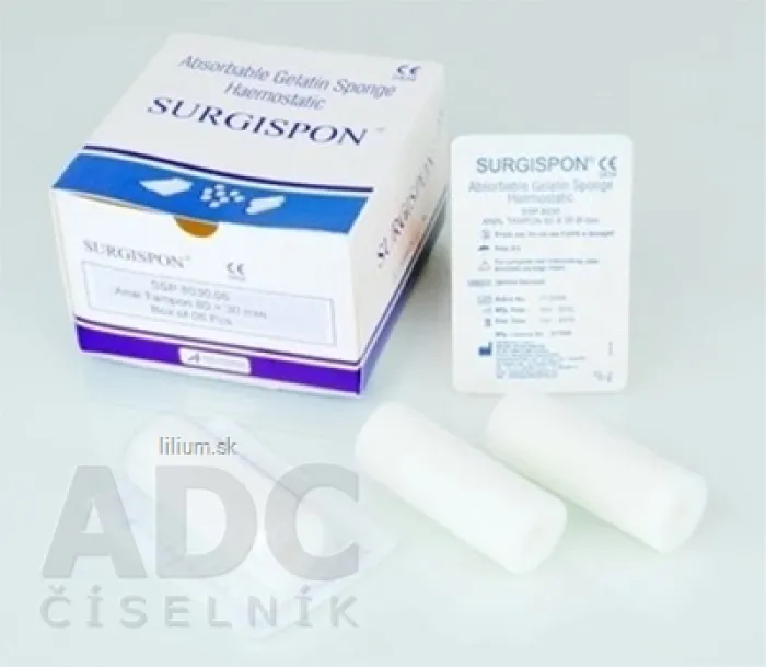 Vstrebateľná hemostatická želatínová špongia. Sterilná, tvárna, vo vode nerozpustná vstrebateľná špongia je určená pre hemostatické použitie pre aplikáciu na krvácajúci povrch.