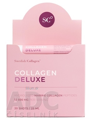 Výživový doplnok, tekutý hydrolyzovaný rybí kolagén, s kyselinou hyalurónovou, vitamínmi a minerálmi. S príchuťou lesného ovocia. So sladidlom. Produkt je vo forme sirupu. 20 dávok v balení.