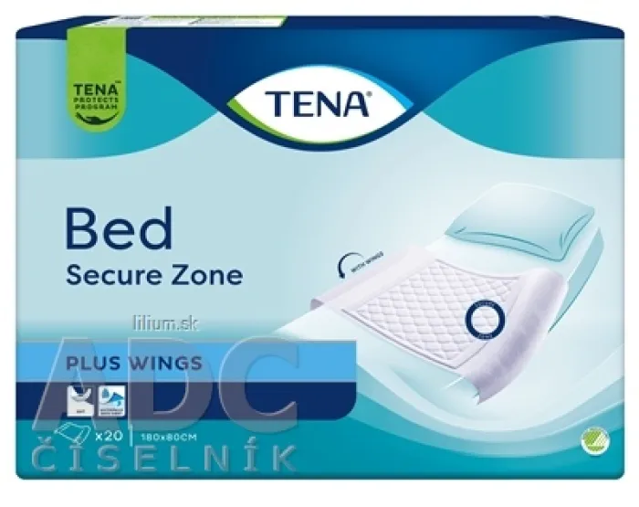 Absorpčná podložka TENA Bed Plus Wings so záložkami slúži ako doplnková ochrana postele, kresla či vozíka a napr. pri výmene absorpčnej pomôcky. Vďaka krídelkám zostáva podložka na svojom mieste.