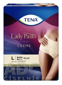 Krémové absorpčné nohavičky TENA Lady Pants Creme pre ženy so strednou až ťažkou inkontinenciou. Vyzerajú ako spodná bielizeň, chránia ako TENA.
