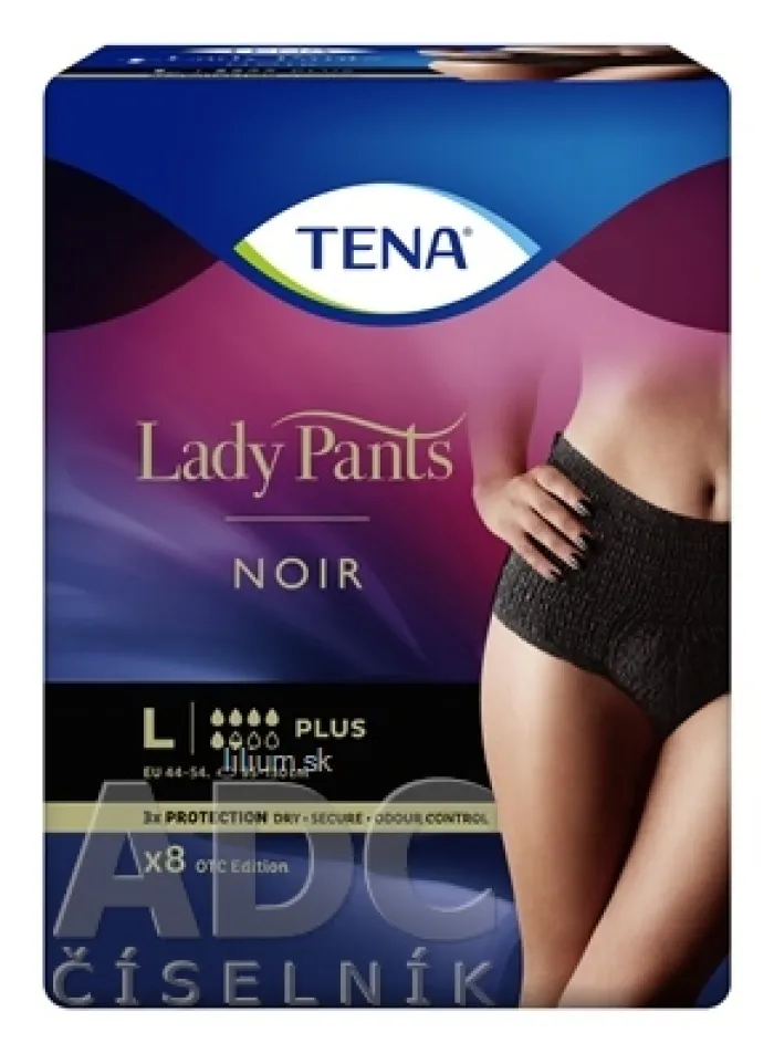 Prvé čierne absorpčné nohavičky TENA Lady Pants Noir pre ženy so strednou až ťažkou inkontinenciou. Vyzerajú ako spodná bielizeň, chránia ako TENA.