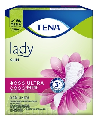Anatomicky tvarované slipové vložky TENA Lady sú špeciálne vyvinuté pre ženy s veľmi ľahkým únikom moču.
