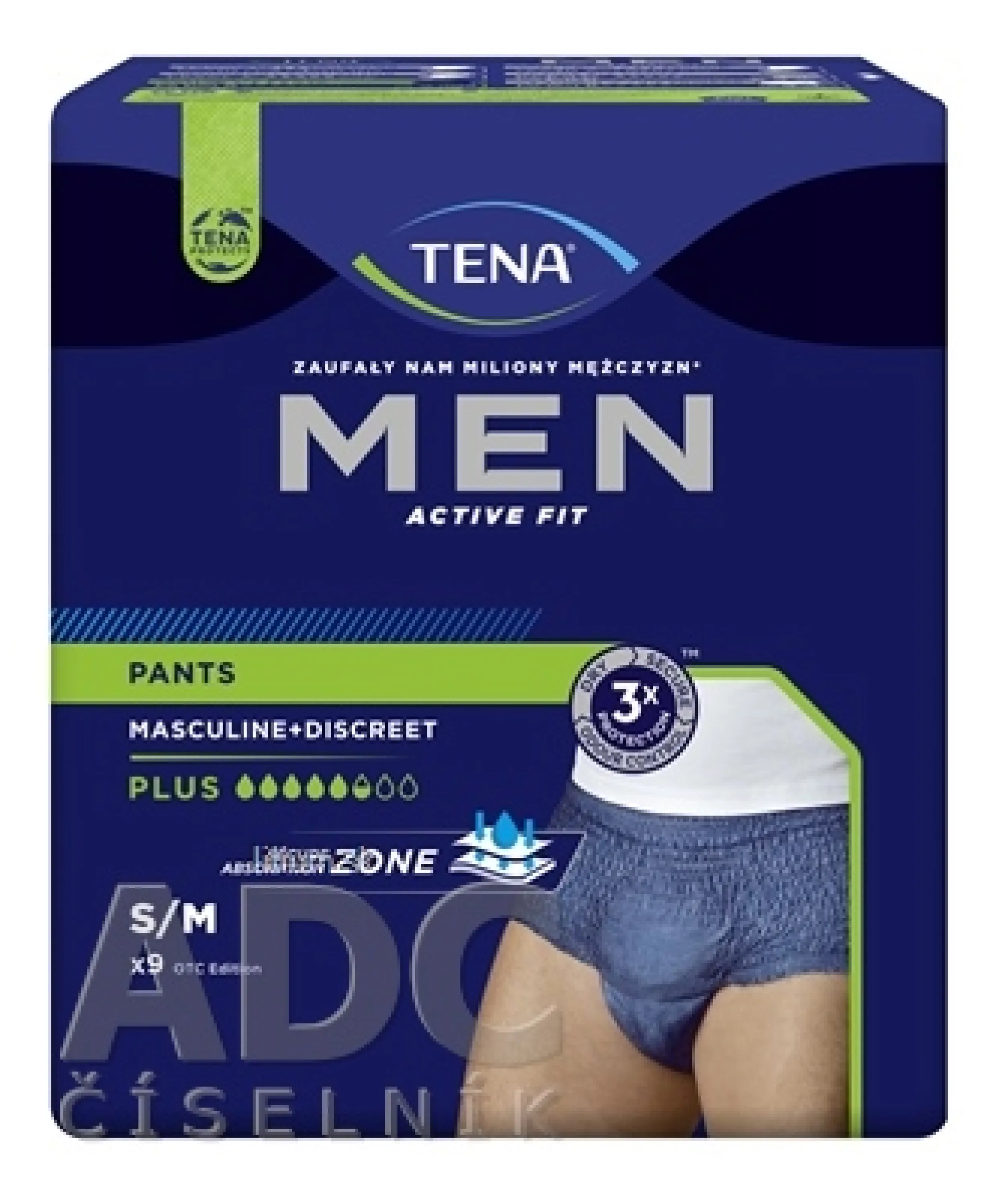 Tmavo modrá inkontinenčná spodná bielizeň TENA Men Pants Blue pre mužov so stredným až ťažkým únikom moču. Vyzerá ako spodná bielizeň, chráni ako TENA.