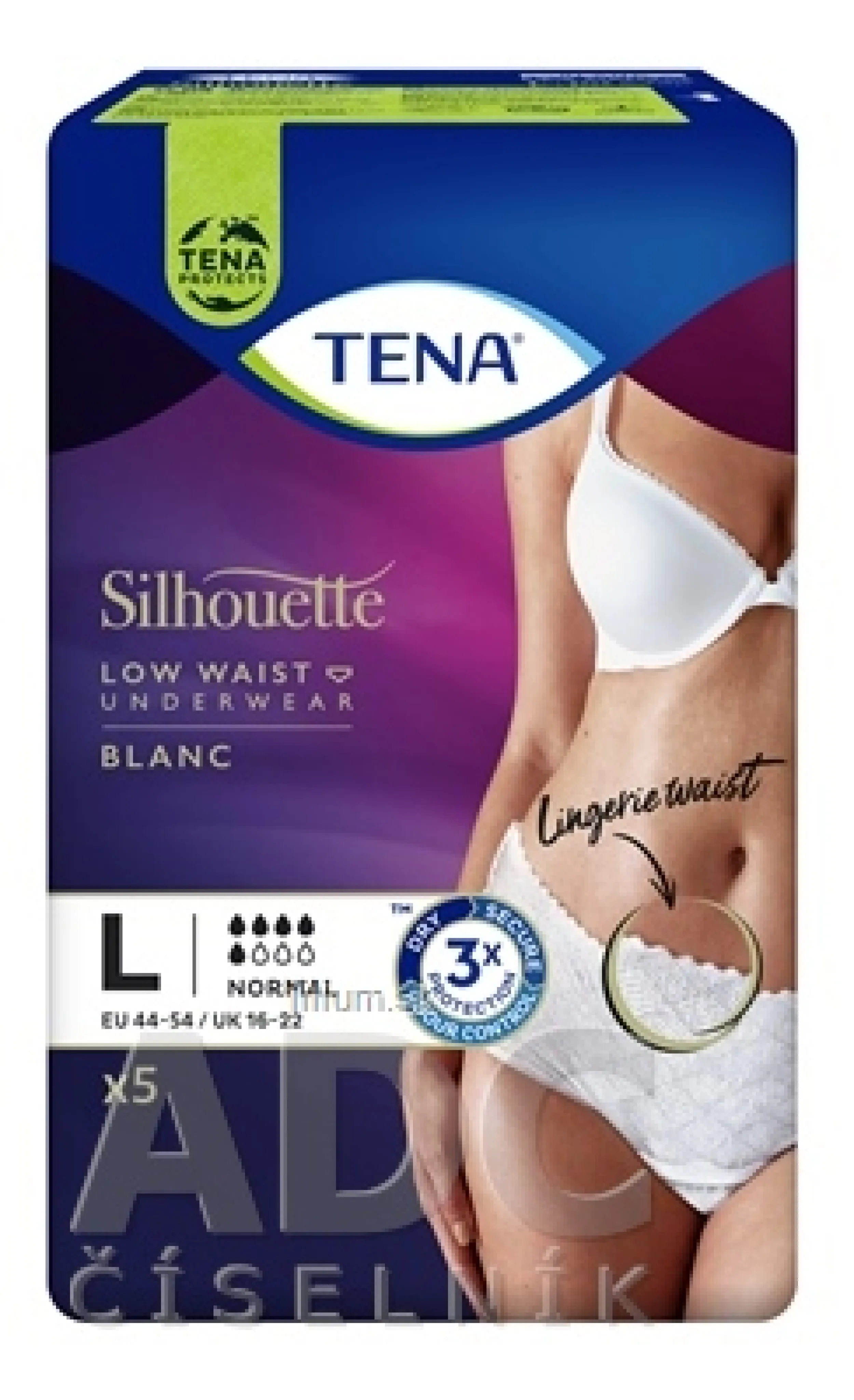 Absorpčné spodné prádlo TENA Silhouette Normal pre ženy so strednou až ťažkou inkontinenciou. Hebké ako bavlna so zníženým krajkovým pásom vyzerajú úplne ako bežná spodná bielizeň.