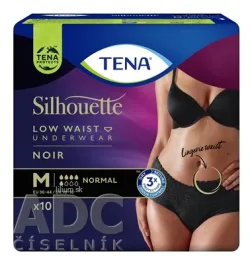 Čierne absorpčné spodné prádlo TENA Silhouette Normal pre ženy so strednou až ťažkou inkontinenciou. Hebké ako bavlna so zníženým krajkovým pásom vyzerajú úplne ako bežná spodná bielizeň.