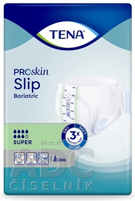 Plienkové nohavičky TENA Slip Bariatric sú praktickým riešením pre imobilné osoby s ťažkou inkontinenciou moču. Vhodné pre osoby s obvodom bokov až 178 cm, pre mužov aj ženy.