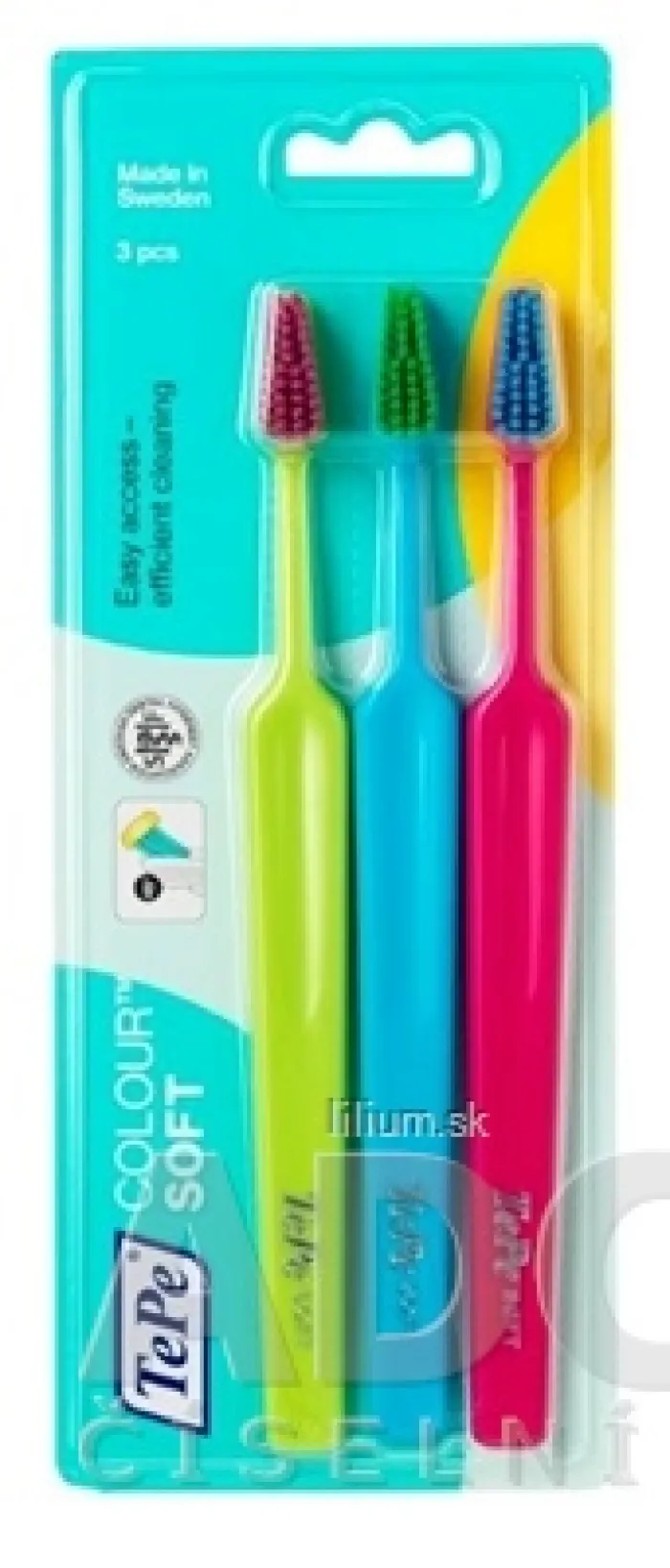 Zubné kefky TePe Select soft s farebnými vláknami.