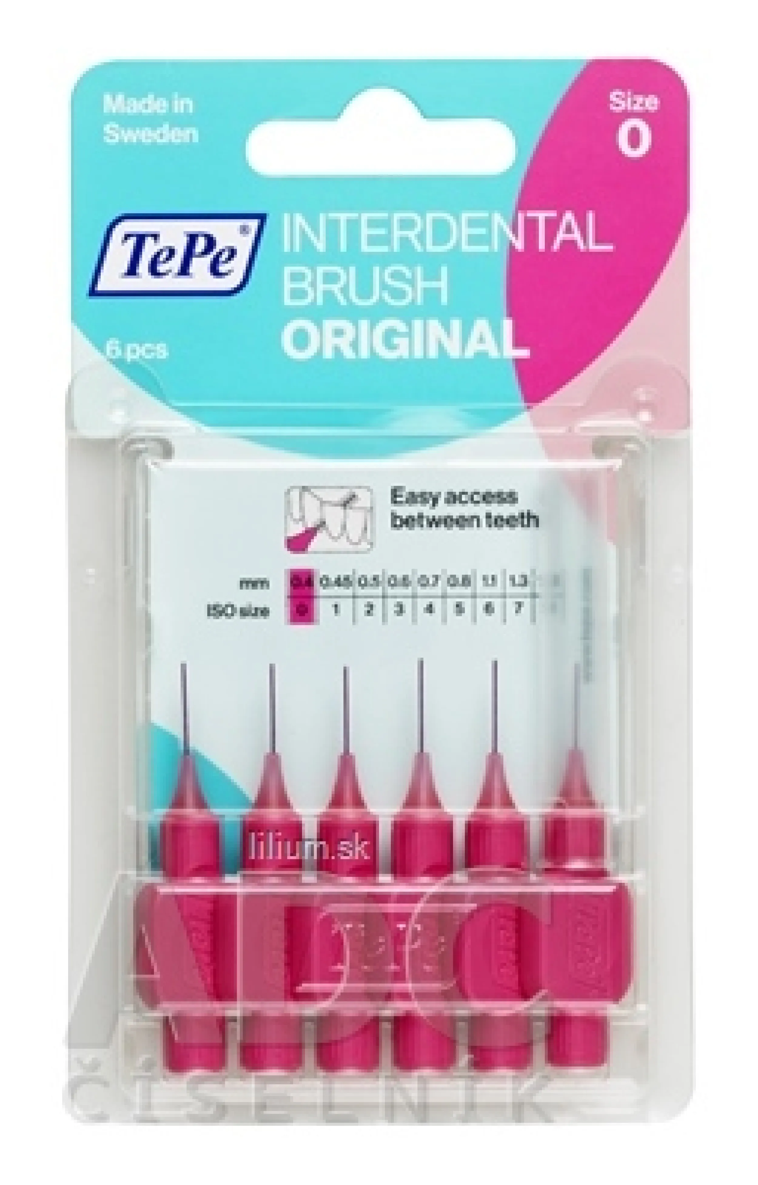 Medzizubné kefky TePe Original veľkosť 0 na dentálnu starostlivosť, 0,4 mm (ružová rukoväť).
