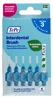 Medzizubné kefky TePe Original veľkosť 3 (t.j. 0,6 mm - modrá rukoväť), na dentálnu starostlivosť.