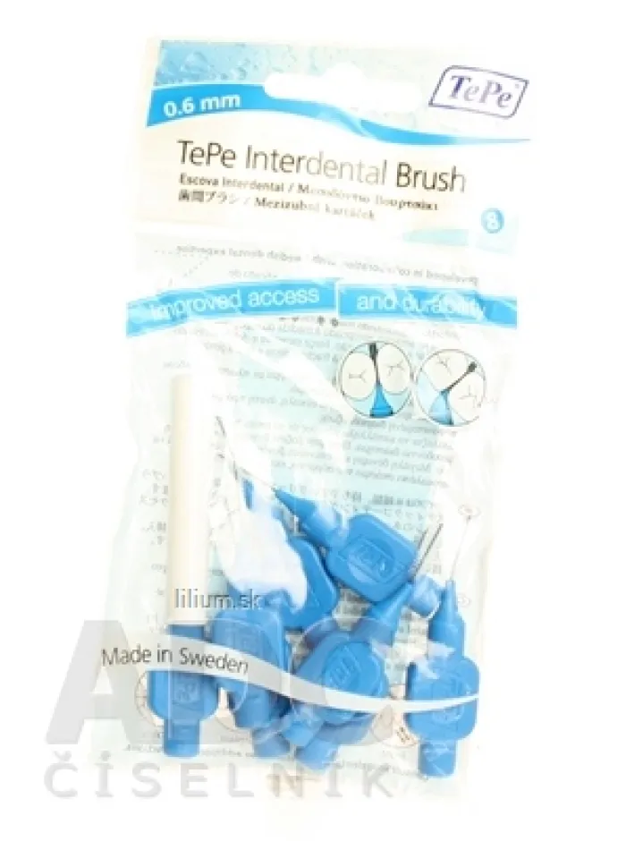 Medzizubné kefky TePe na dentálnu starostlivosť, 0,6 mm (modrá rukoväť).