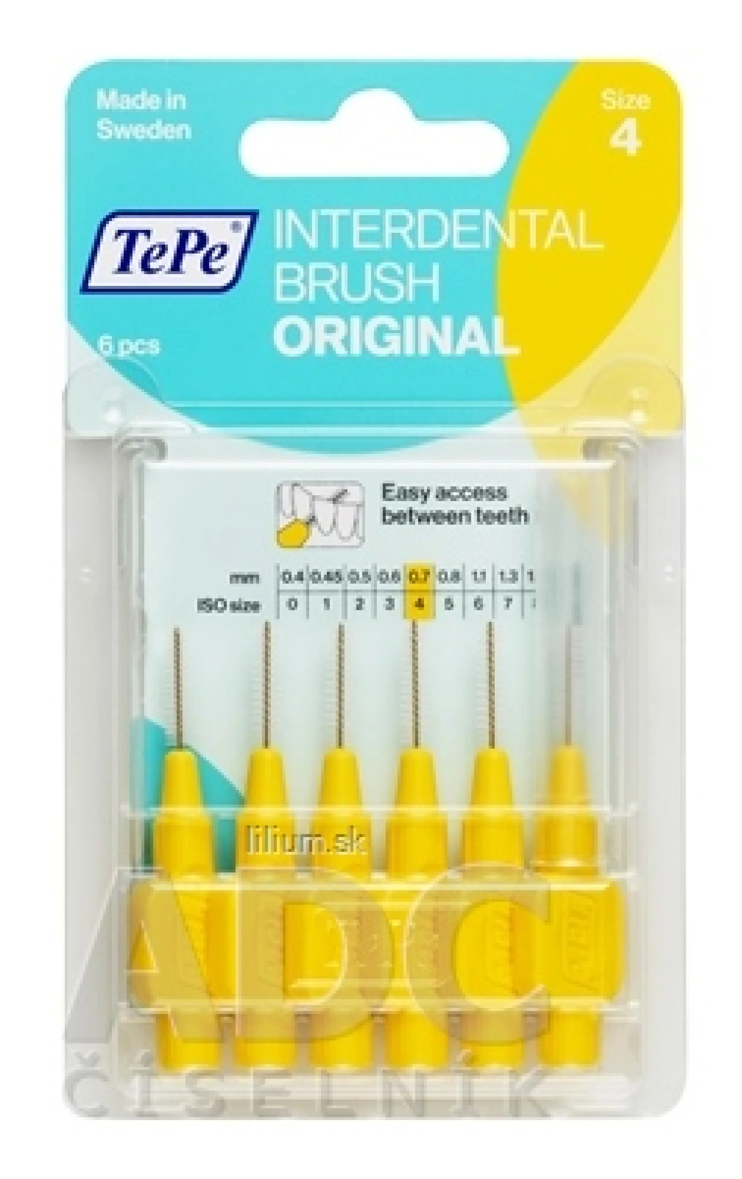 Medzizubné kefky TePe Original na dentálnu starostlivosť, veľkosť 4: 0,7 mm (žltá rukoväť).