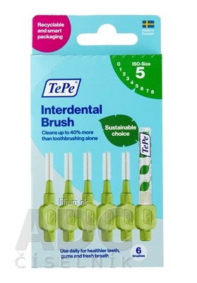 Medzizubné kefky TePe Original veľkosť 5 (t.j. 0,8 mm - zelená rukoväť), na dentálnu starostlivosť.