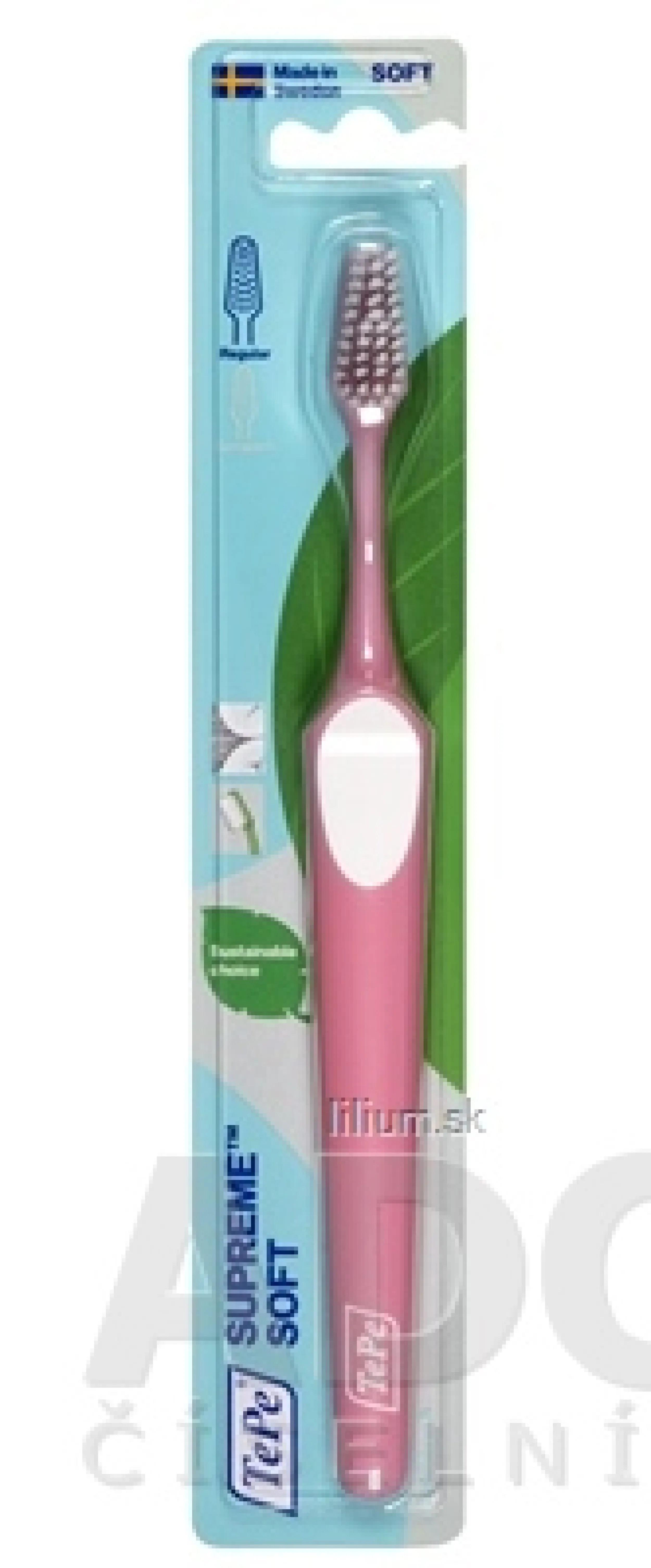 Zubná kefka so stredne veľkou hlavicou a jemnými vláknami v dvoch dĺžkach a profiloch. Z materiálu z udržateľných zdrojov.