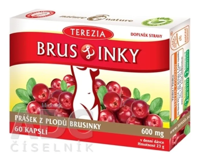 Výživový doplnok s obsahom 300 mg zmesi BRUSLINKY (prášok sušeného extraktu z plodov brusnice obyčajnej - Vaccinium vitis-idaea 200 mg, zemiakový škrob) v jednej kapsule.