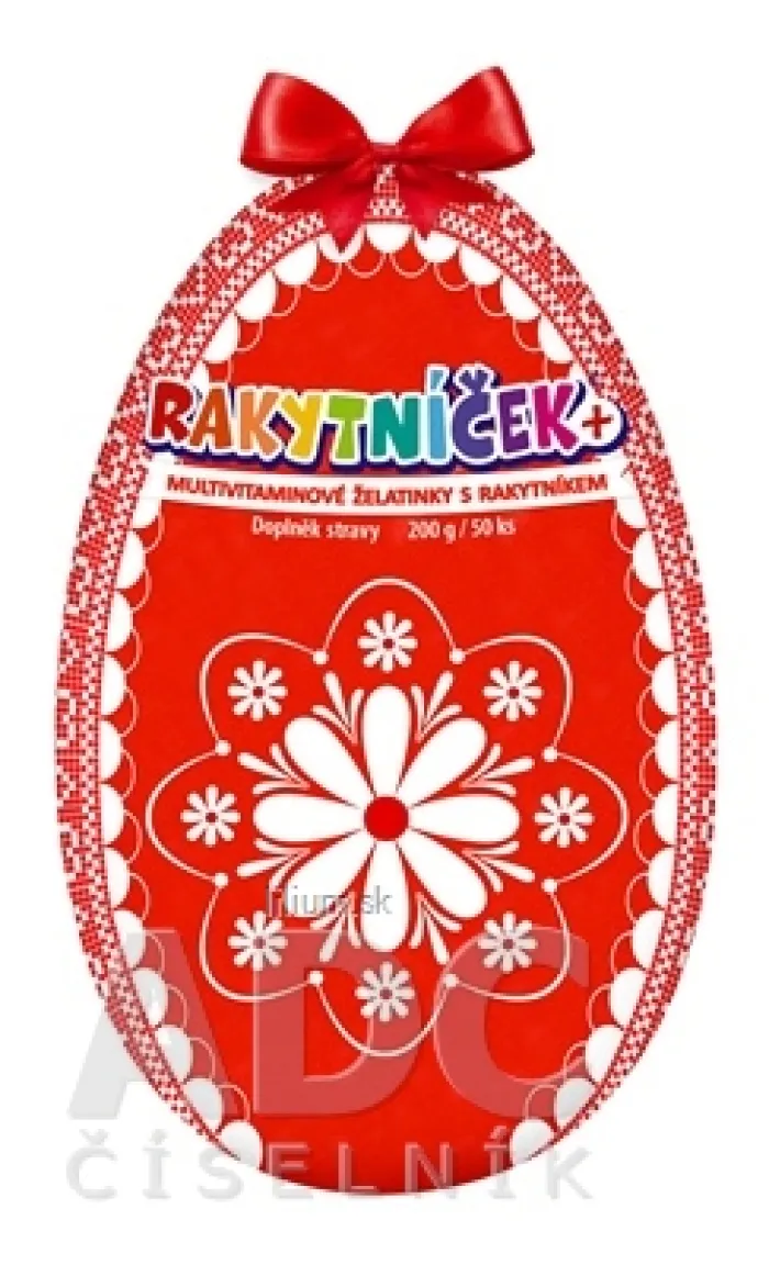 Multivitamínové želatínky Rakytníček+ obsahujú rakytník a zmes ovocných koncentrátov a vitamíny. Obsahuje 20% ovocnej šťavy a 9 vitamínov.