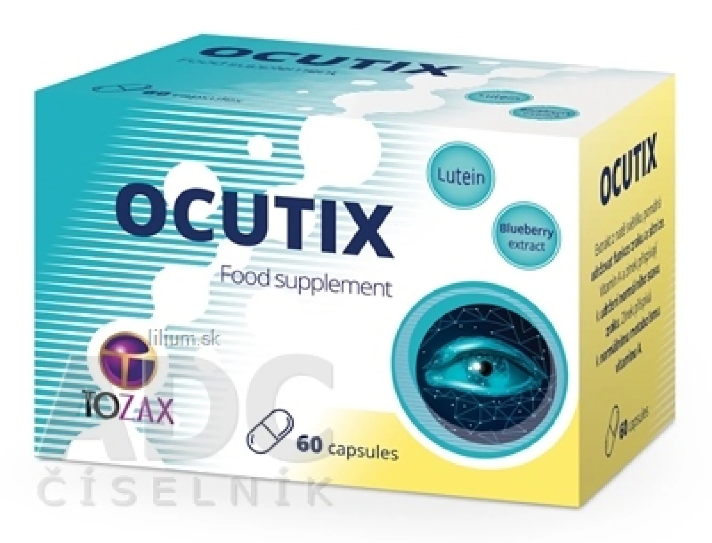 Výživový doplnok s obsahom Luteínu, Zeaxantínu, Extraktu z plodov čučoriedok, Extraktu z vňate očianky (Euphrasia sp.), Vitamínu A (retinyl-palmitát), Vitamínu B1 (tiamínhydrochlorid), Vitamínu E (D-alfa-tokoferol), Zinku (glukónan zinočnatý).