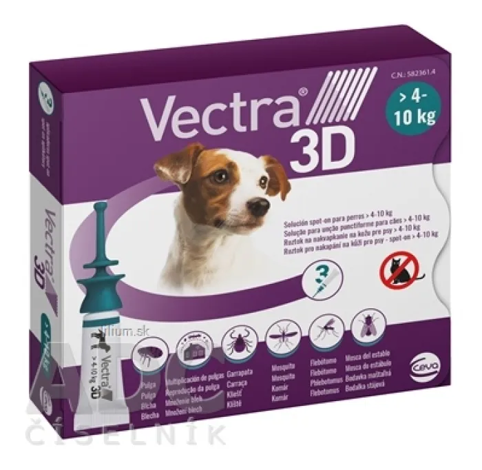 Veterinárny liek je roztok na nakvapkanie na kožu pre psy, zabalený v jednej dávke spot-on aplikátorov.