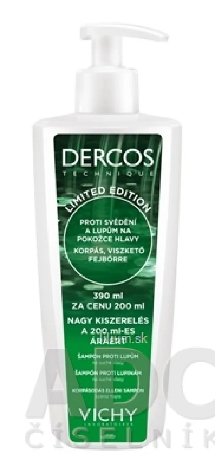 Šampón proti lupinám určený pre suché vlasy vo výhodnom balení - 390 ml za cenu 200 ml.