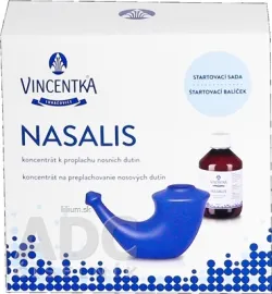 Balenie štartovacieho balíčka obsahuje preplachovaciu plastovú kanvičku a 300ml koncentrátu VINCENTKA NASALIS.