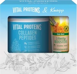Darčekové balenie kolagénu Vital Proteins Collagen Peptides a sprchového gélu Kneipp Vitality Booster.