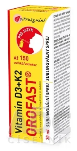 Jedna dávka (jeden vstrek) sublingválneho spreja VITAMÍN D3+K2 OROFAST® obsahuje 500 IU (12,5 µg) vitamínu D3 a 50 µg vitamínu K2. Denná dávka vitamínu D sa stanovuje individuálne s prihliadnutím na vek, životný štýl, stravovacie návyky, nadváhu či obezitu, aktuálnu intenzitu slnečného žiarenia či farbu pleti.