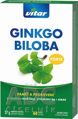 Výživový doplnok - kapsuly s obsahom extraktu z ginkgo biloby, DMAE, horčíka, vitamínov B6 a C.