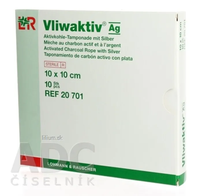 Vliwaktiv® Ag tamponáda s obsahom aktívneho uhlia a striebra je antimikrobiálna, pružná, mäkká, na ranu sa nelepiaca tamponáda, ktorá obsahuje striebrom impregnovanú tkaninu s aktívnym uhlím. Vliwaktiv® Ag tamponádu s obsahom aktívneho uhlia a striebra možno ideálne tampónovať do hlbokých rán alebo použiť na povrchové rany ako obväz. Tamponáda viaže exsudát rany s mikroorganizmami a nepríjemny zápach.