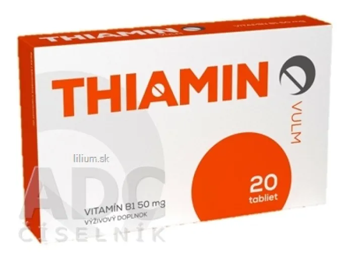 Výživový doplnok s obsahom vitamínu B1 (tiamínhydrochlorid) 50 mg.