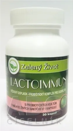 Výživový doplnok Lactoimmun s obsahom inulínu a 5 kmeňov so 6 miliardami živých baktérií v 1 kapsule: