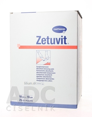 Sterilný kompres - v balení po 25 ks nasiakavé, priedušné, mäkké kompresy s rozmerom 10x10 cm